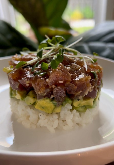 - 6 oz sushi grade ahi tuna cut into 1/4 inch cubes