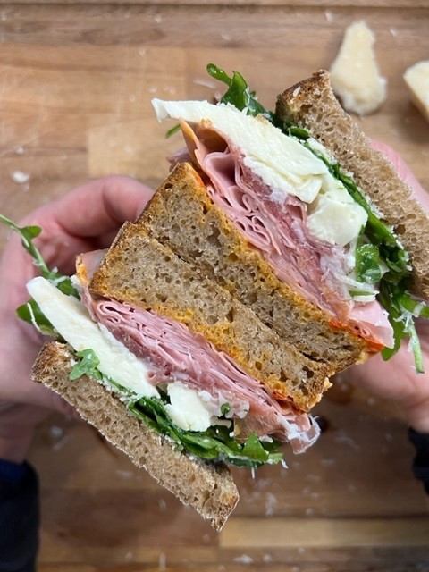 - Assemble your sandwiches with the cured meats, fior de latte (drizzle with olive oil and maldon slat), arugula and top with a drizzle of good balsamic vinegar.