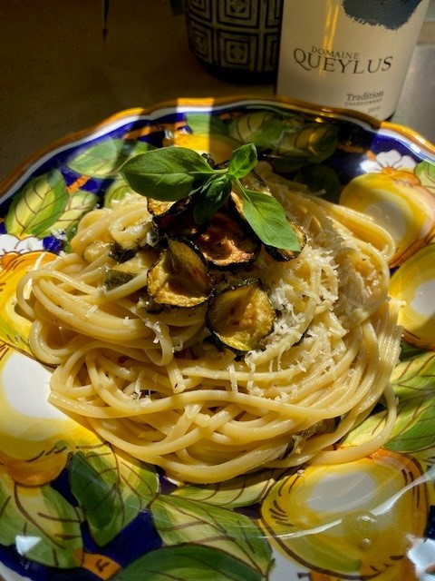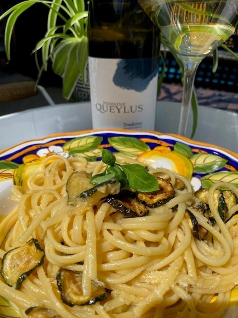 Spaghetti alla Nerano pairs exceptionally well with Domaine Queylus 2019 Chardonnay Tradition. This wine is barrel fermented and aged in French oak which attributes to its buttery characteristics and notes of caramelized fruit. This wine is approachable for the everyday drinker but if you’re a serious wine lover this will check all the boxes.