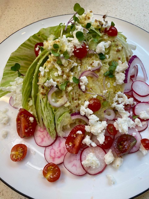 I’ve always loved a classic wedge salad that you order at a steakhouse. My family and I love making them at home as a side for dinner. This wedge salad is a twist on the classic blue cheese version. I love getting inspiration from classic dishes but I like to add a lighter and healthier twist to them. This wedge salad highlights fresh summer produce such as radish and sweet cherry tomatoes. The dressing I paired with this one is highly addictive! It’s lemony, garlicky, creamy and stands up so well to the crisp iceberg lettuce. Add your favourite vegetables and feta cheese and it will be your new favourite lunch or side dish!
