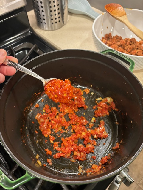 - 1 28 oz can whole peeled tomatoes (crushed by hand or with an immersion blender)