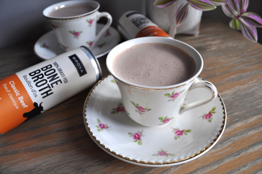 Have you ever tried making bone broth hot chocolate? You need to trust me when I tell you that it will blow your mind! This is the perfect warming beverage for your digestion. It’s delicious and it will make you feel amazing! The key ingredient to this drink is to use a good quality grass-fed beef bone broth. Lately I’ve been incorporating bone broth into my diet because it’s great for your gut, health and digestion. Bone broth is rich in collagen, vitamins and minerals. Incorporating bone broth into hot chocolate is seriously so delicious! It’s my new favourite winter beverage and I love that it’s loaded with health benefits.