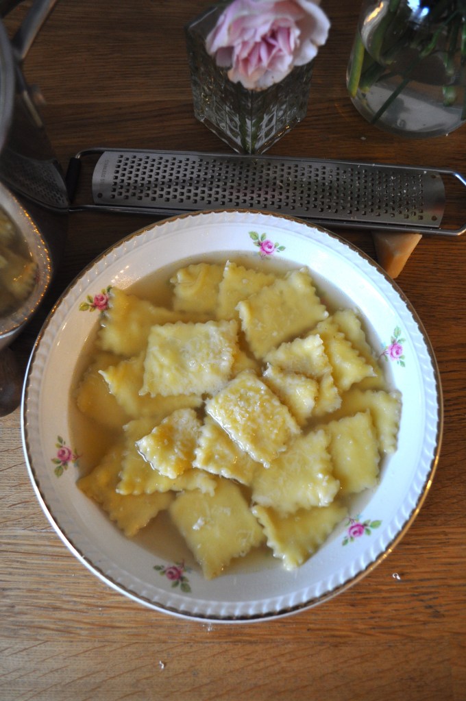 When I first saw this pasta I instantly knew that I needed to try making them. I just knew that they would be an incredible delight and they were! The silky pasta filled ravioli in the hot chicken broth is incredibly warming and delicious. They honestly tasted like a warm hug! They do take a bit of time to make as you need to make the pasta dough, prepare the filling and make homemade chicken stock. I would suggest making the homemade chicken broth in advance and keeping it in the freezer so then it’s ready to use. Making everything in one go is possible but it will take many hours. I watched a few videos of Italian Nonna’s making this traditional Emilia-Romagna dish and they made it look so easy because they have years of practice under their belts. I would highly recommend giving this recipe a try. It uses simple ingredients and is overall a beautiful traditional Italian dish.