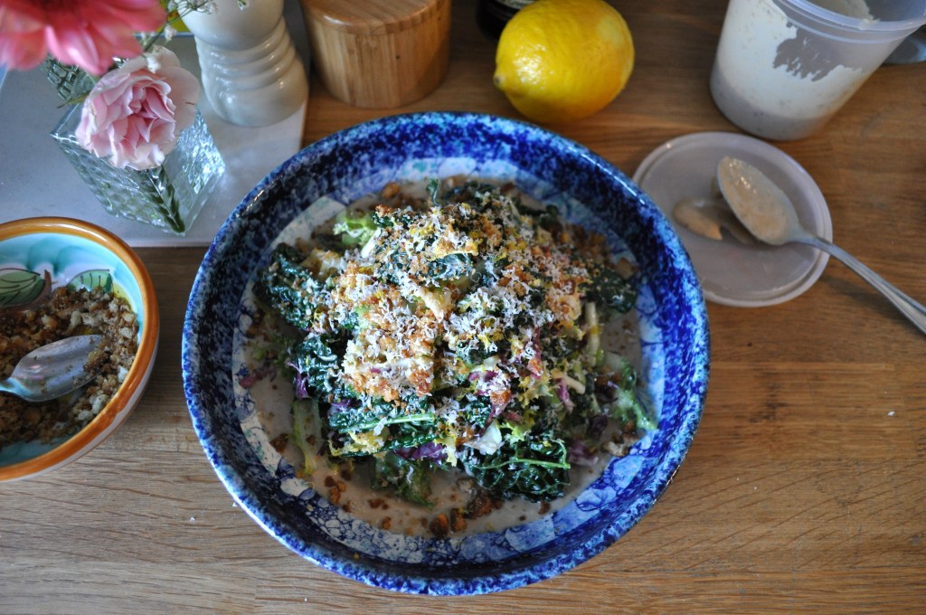 If you haven’t heard of tonnato, it’s a creamy sauce made from tuna, anchovy, garlic, lemon, capers and olive oil. It’s from the Piedmont region in Italy and it’s traditionally served over thinly sliced veal. The sauce uses minimal ingredients which is what Italian cooking is all about. As this sauce requires minimal ingredients, it’s important to use the best high quality ingredients you can find. For this recipe you want to use a good quality tuna packed in olive oil and a good quality extra virgin olive oil. If you can’t find this type of tuna at the grocery store, you can typically find it at an Italian speciality store and the jars cost around $8-10. I thought that the tonnato would pair perfectly over hearty leafy greens. I used Tuscan kale, endive and radicchio. The sauce worked perfectly on the greens and it was a delicious hearty and balanced salad.