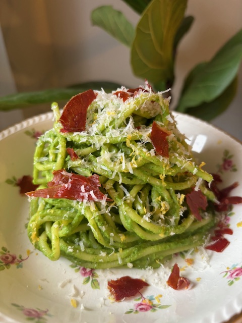 Overall I did really enjoy this pasta. It utilizes fresh Spring peas and the salty component from the prosciutto worked quite well in balancing out the sweetness from the peas. I’m not sure if she added lemon zest in her recipe but the addition of the lemon zest added a bright citrus note that cut through the richness of the sauce. I would make this again but may alter some ingredients. I’m curious to see how it would be with guanciale or pancetta. Stay tuned!