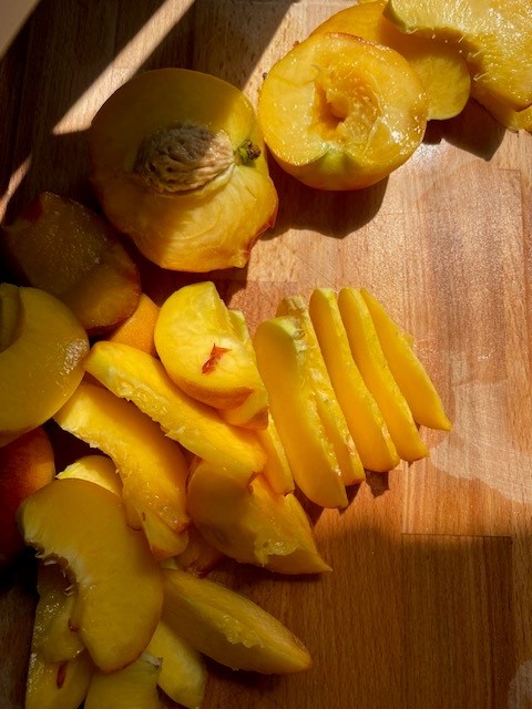 - 4 peaches, sliced with the skin on. Not overly ripe