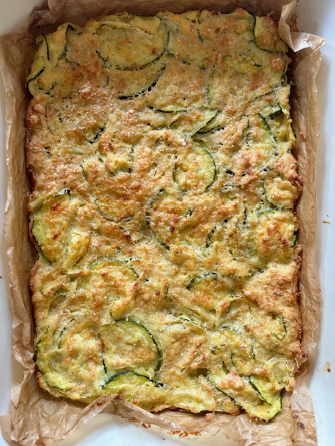 - Bake in the oven for 30-35 minutes until the scarpaccia is golden. Let cool before slicing.