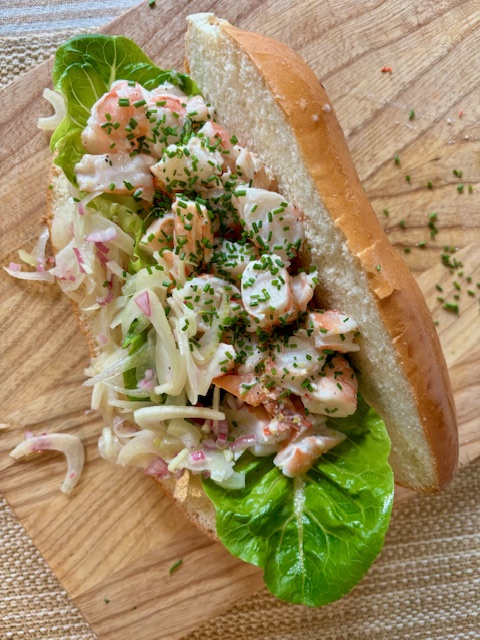 I’ve been seeing lobster rolls from Maine all over my discover page on Instagram. I’ve had a huge craving for them but lobster is expensive and hasn’t been on sale in my area. I also live in Ontario and very far from the ocean. To satisfy my craving, I decided to make the next best thing, a shrimp roll on a brioche bun. This shrimp roll has all of the same elements in a cold style lobster roll. Creamy mayonnaise and zesty lemon all on a buttered, toasted brioche roll. The brioche roll is absolutey key for this! If you can’t find them you can also use hot dog buns which I have done many times in the past. All you need to do is butter the outside of the buns and fry them in a pan until golden.