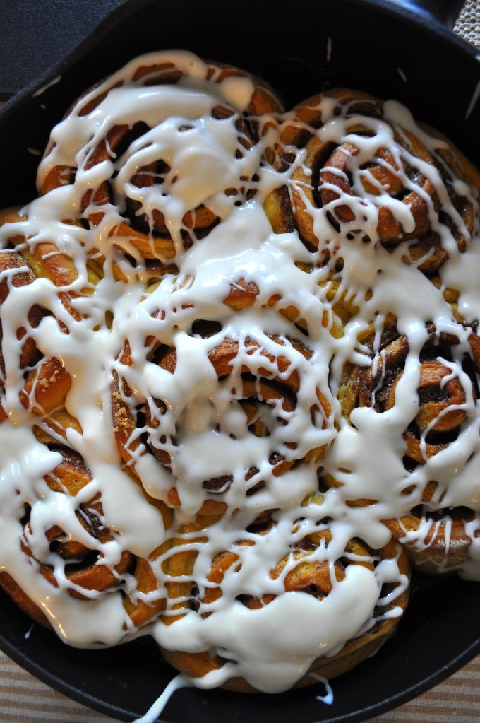 Pumpkin Spice Cinnamon Rolls with Maple Cream Cheese Frosting